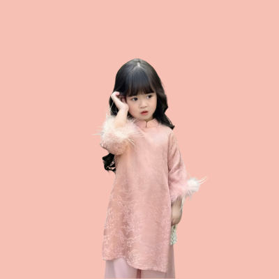 Áo dài cho bé gái tay ngắn phối lông mềm mang phong cách truyền thống kết hợp nét hiện đại tinh tế. Chất liệu vải mềm mại, thoáng mát, an toàn cho làn da nhạy cảm của trẻ nhỏ. Điểm nhấn nổi bật nằm ở phần tay ngắn phối lông mềm, tạo sự sang trọng và duyên dáng, giúp bé trông thật xinh đẹp và nổi bật trong những dịp quan trọng như lễ Tết, dự tiệc, hay khi chụp ảnh kỷ niệm. Form áo dài thoải mái, dễ vận động, giúp bé vừa đẹp vừa tự tin vui chơi.
