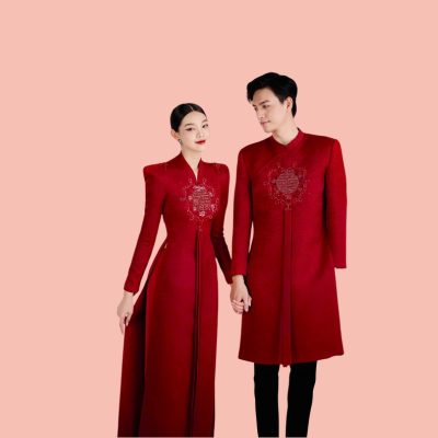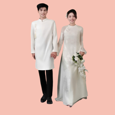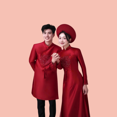 Với form dáng chuẩn, áo dài tôn lên vóc dáng thanh thoát của cô dâu và sự lịch lãm của chú rể. Chất liệu vải cao cấp mềm mại, thoáng mát, giúp cặp đôi thoải mái trong suốt buổi lễ. Đây là lựa chọn hoàn hảo cho lễ cưới, lễ gia tiên, hoặc những bộ ảnh cưới kỷ niệm.