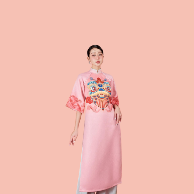 Áo dài múa họa tiết lân màu hồng – QSV90